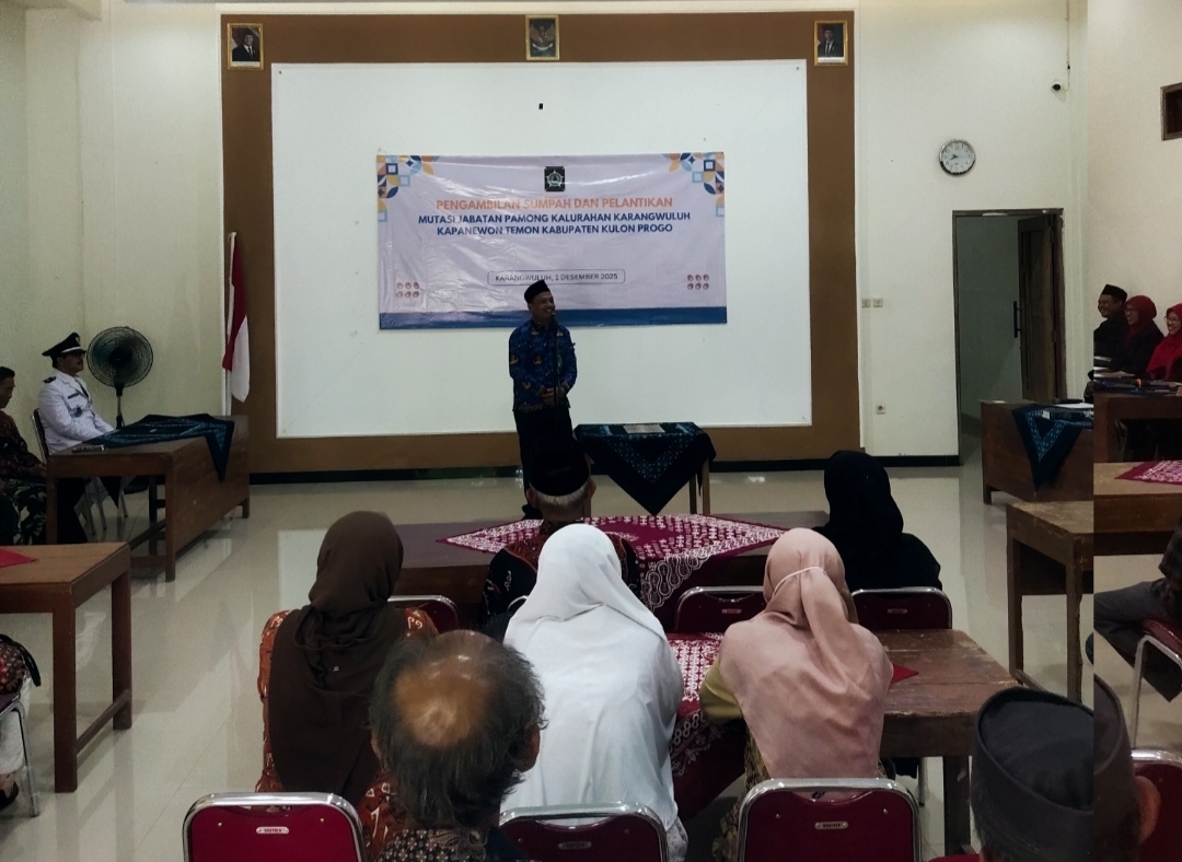 Karangwuluh- Pada hari senin tanggal 1 Desember 2025 dilaksanakan pengambilan sumpah dan pelantikan mutasi jabatan pamong kalurahan Karangwuluh. Acara ini digelar di Balai Kalurahan Karangwuluh Kapanewon Temon Kabupaten Kulon Progo. Mutasi pamong ini dilakukan dalam rangka untuk penyegaran dan peningkatan kinerja pamong.